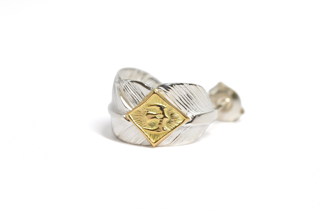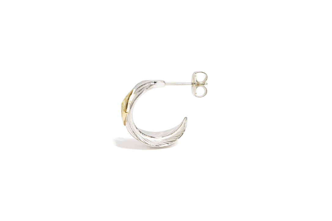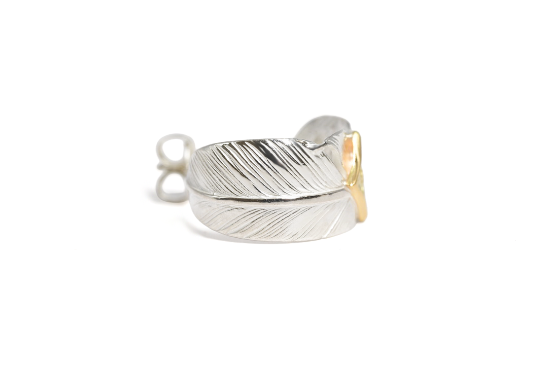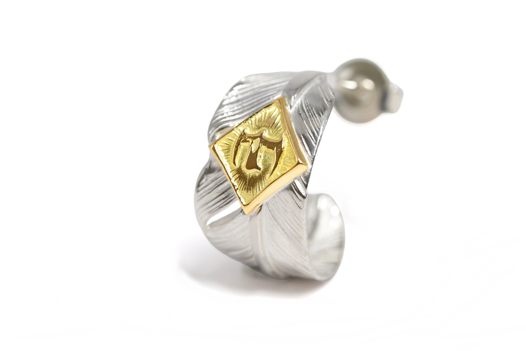 three-quarter hoop feather earring/K18YG M eagle metal