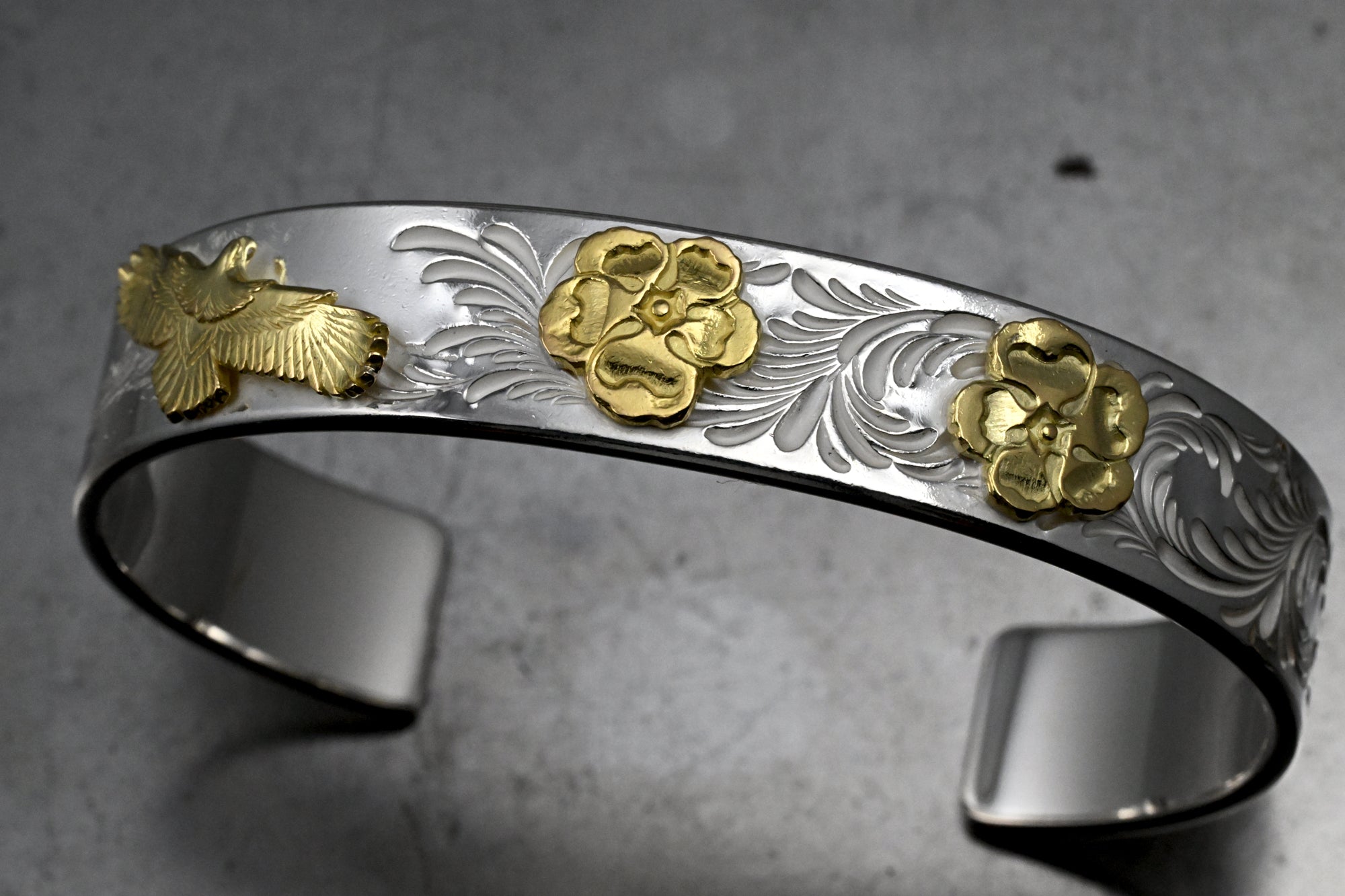 12mm arabesque bangle M size/K18YG hibiscus metal