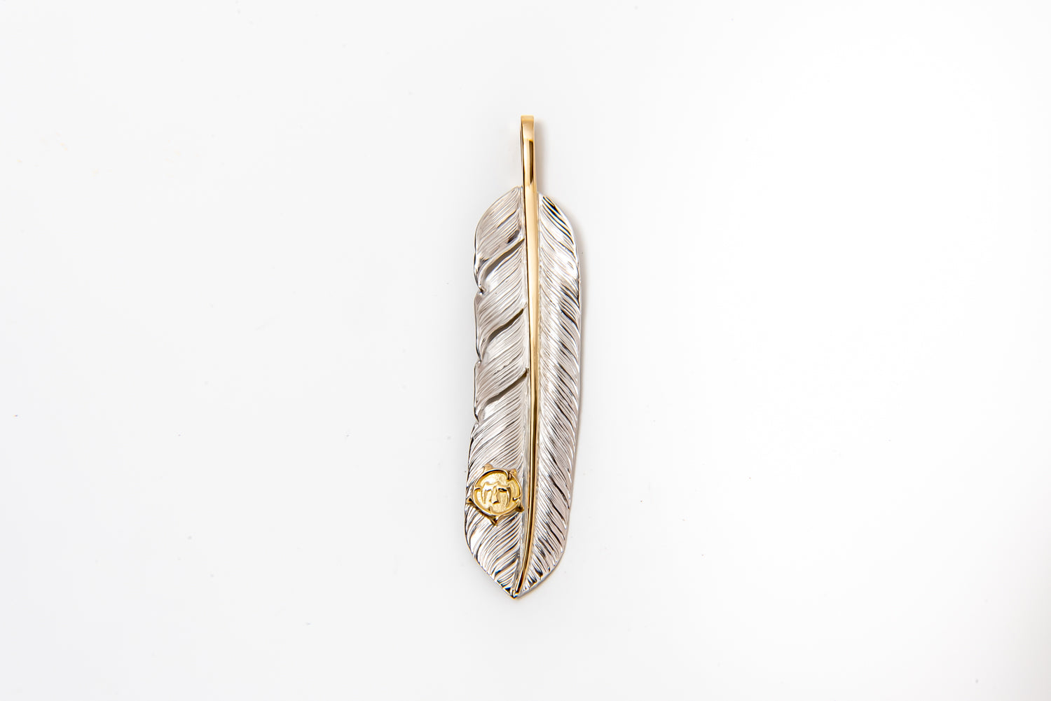 芯部分をK18YGになったフライトフェザーにK18YGのメタルを付けたペンダント。