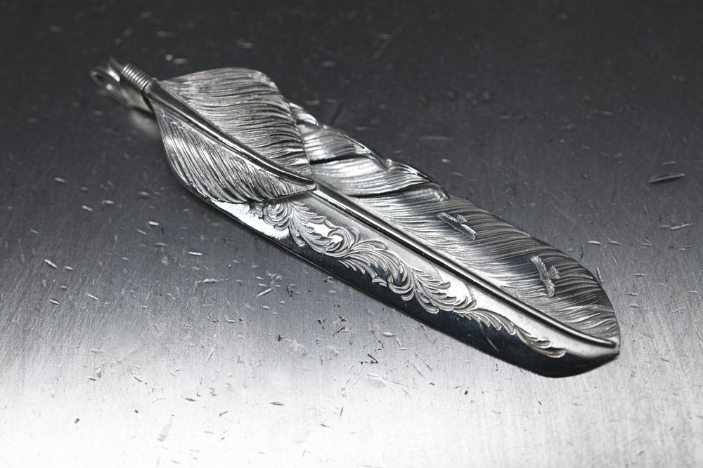 唐草彫りを施したLサイズフェザーに フライトハートフェザーを合わせたフェザートップ。
