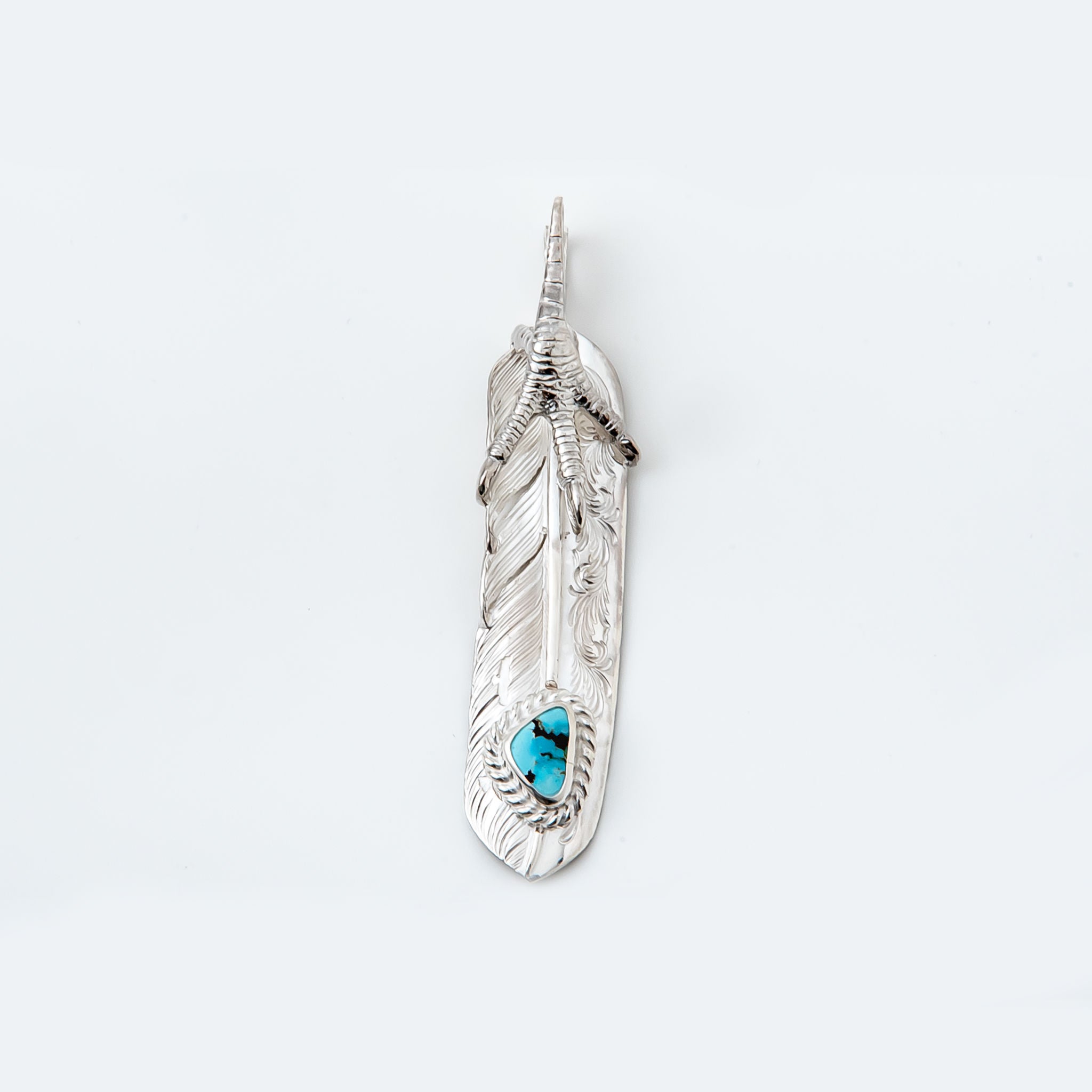 唐草が施されたフェザーとクローのセットに一点もののラベンダーターコイズを合わせたペンダント