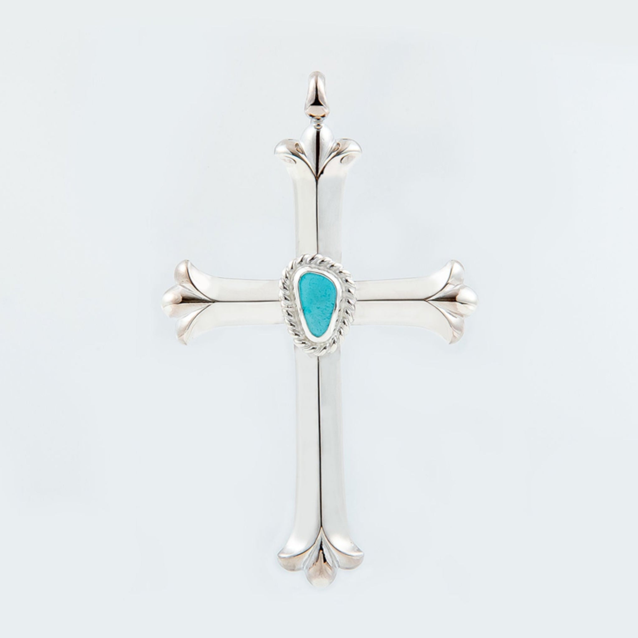 クロスに一点もののラベンダーターコイズを合わせたペンダント