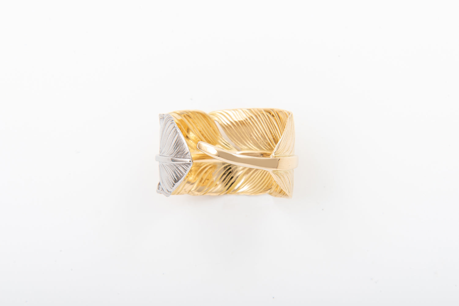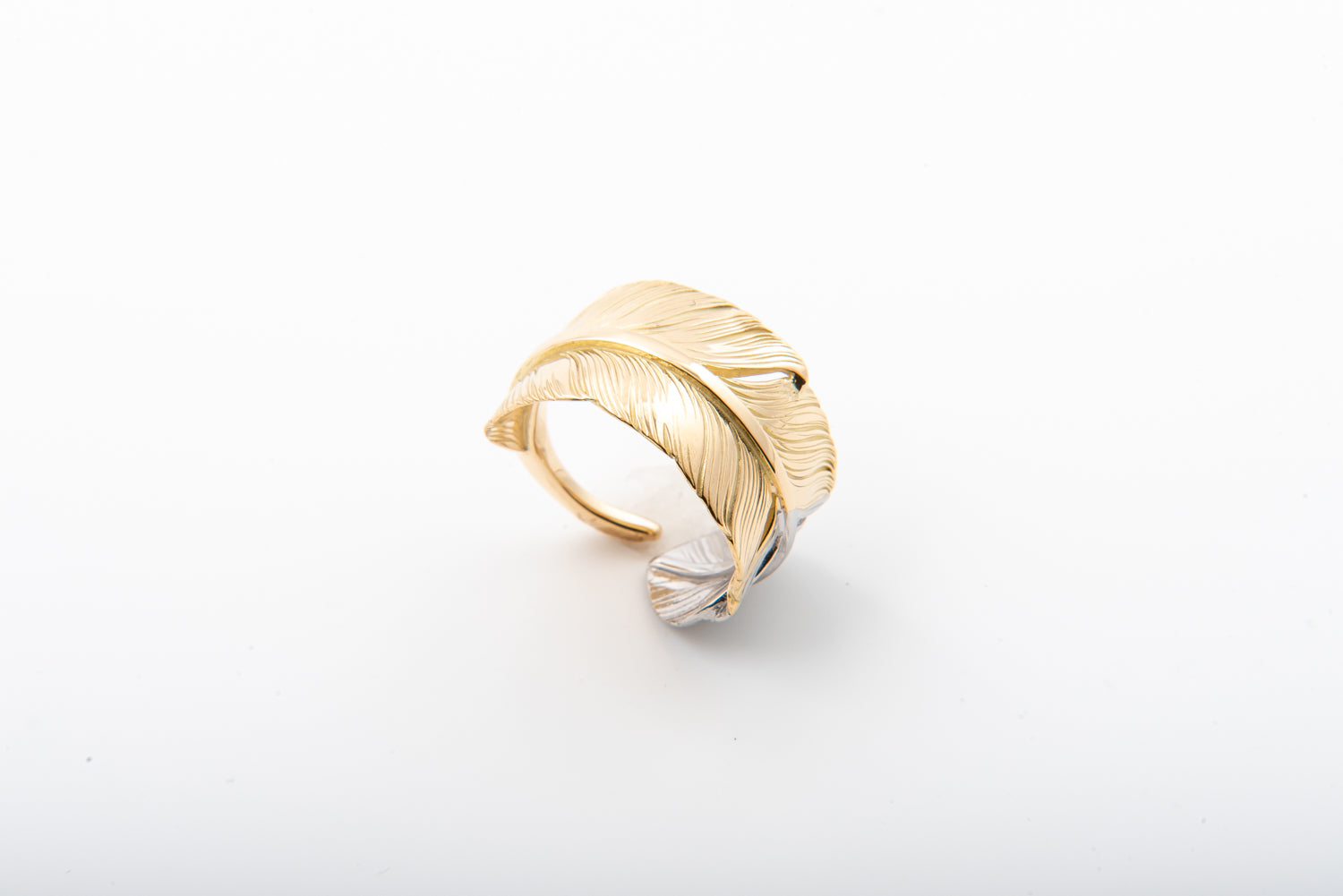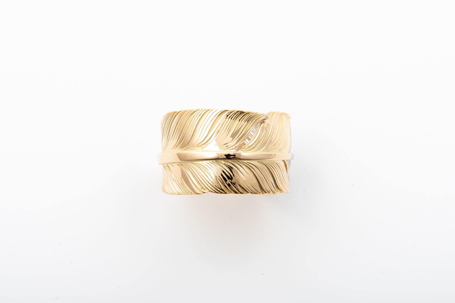 K18YGとPt900を組み合わせたMフェザーリング 。