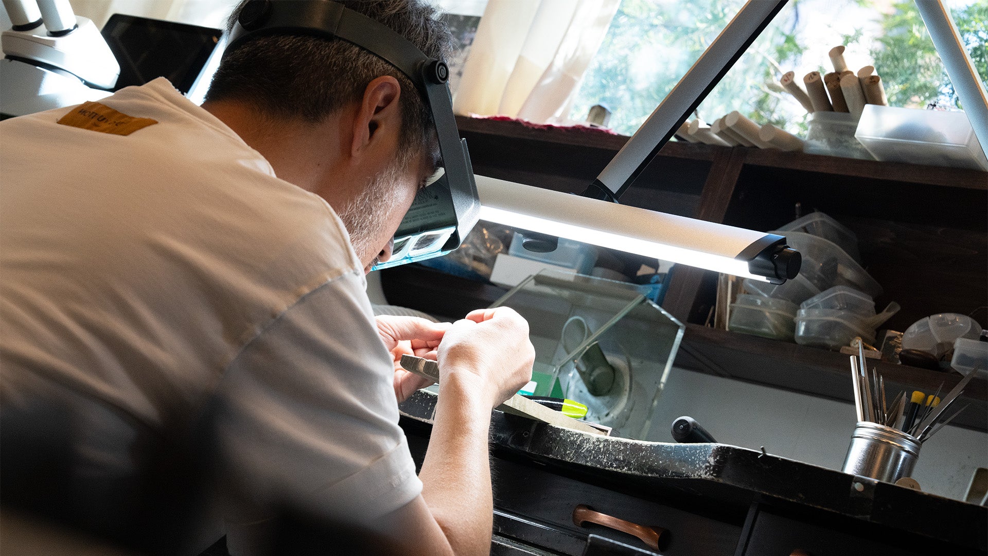 彫り作業はTaroWashimiブランドを確固たる存在たらしめる核となる工程です。