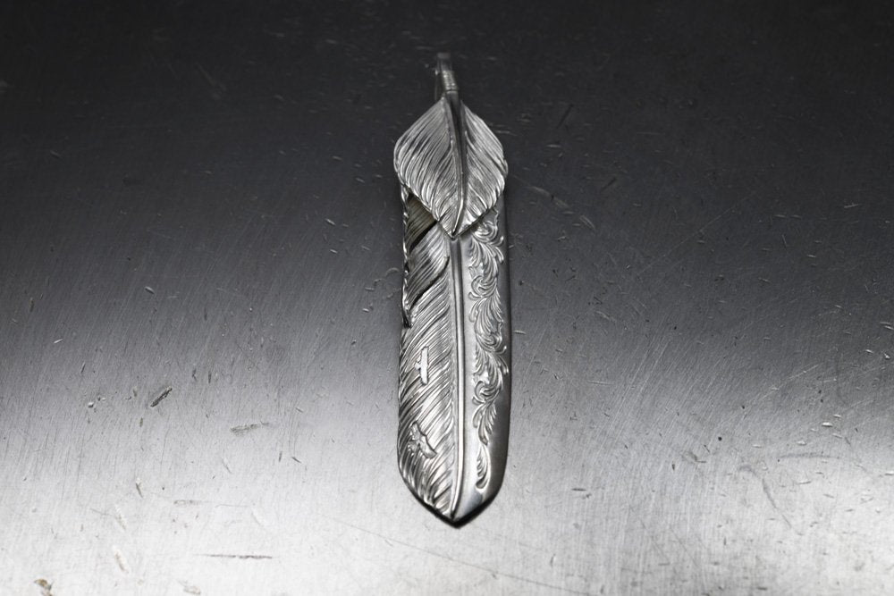 唐草彫りを施したLサイズフェザーに フライトハートフェザーを合わせたフェザートップ。