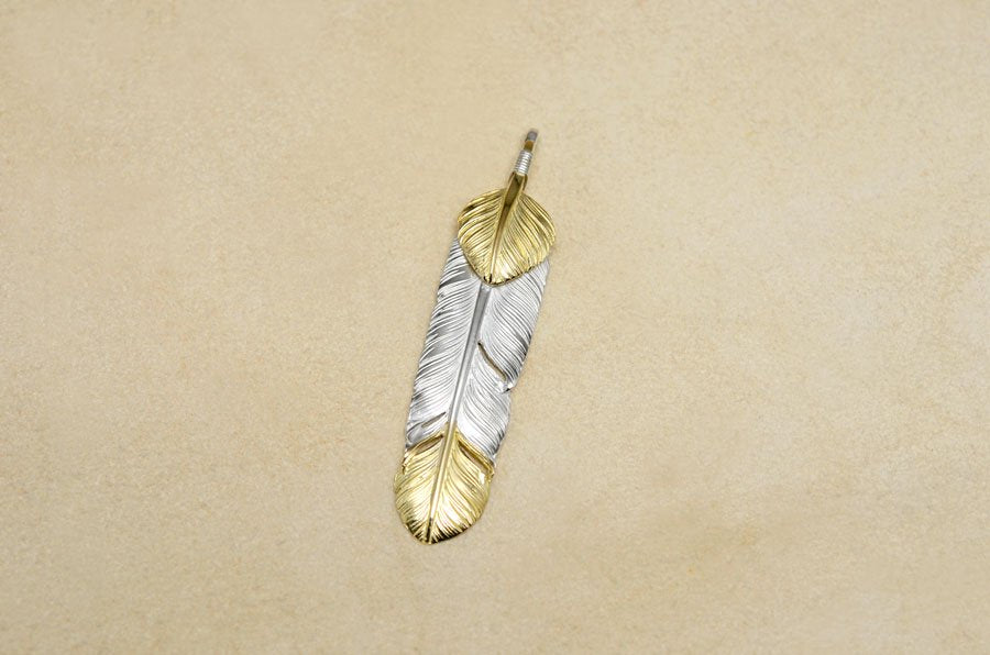 18金と925銀の中サイズフェザーに、ハートフェザーを合わせたトップ。