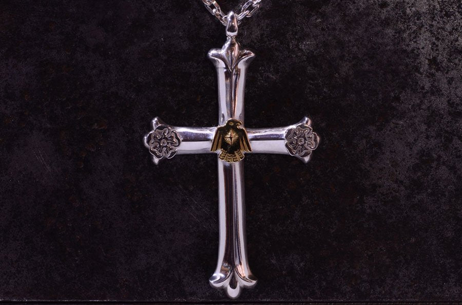 クロストップに18金のサンダーバード、925銀のSフラワーを合わせたネックレストップ。